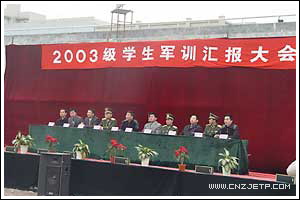26日下午,在学院田径场隆重举行了军训阅兵式,杭州武警指挥学校领导和学院党政领导出席了本次阅兵式,全体学生共分为16个方阵,其中15个为分列式方阵,1个为擒敌方阵,他们用整齐的步伐和响亮的口号,接受老师和同学们的检阅,向大家展示了2003级学生素质过硬、纪律严明的精神风貌。