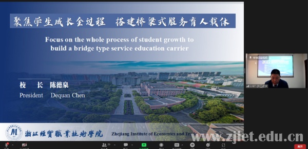 陈德泉向与会中美嘉宾介绍了学校近年来高质量发展和教育国际化工作取得的丰硕成果,并围绕服务学生成长的全过程,重点分享了学校在“三全育人”“实践育人”“服务育人”“资助育人”等方面的特色做法和育人成效。他指出,学生是学校工作的主体,支持和服务学生发展是学校的重要职责,也是助力学生成长成才的有力保障。学校将始终坚持以人为本,强化顶层设计,注重个体差异,实施项目驱动,高度重视并大力支持服务学生发展。