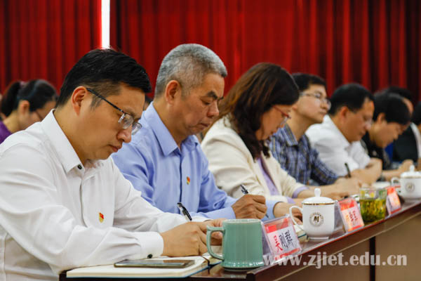 二要锚定目标、紧盯任务,以更高标准更高质量开展好主题教育。学校开展学习贯彻习近平新时代中国特色社会主义思想主题教育,要牢牢把握“学思想、强党性、重实践、建新功”总要求,深化理论学习、强化理论武装,大兴调查研究、强化解决问题,奋力推动发展、强化破难开新,深入检视整改、强化建章立制,把理论学习、调查研究、推动发展、检视整改等贯通起来,有力、有序推进主题教育深入扎实开展。要紧紧围绕高质量发展这个首要任务,要与“两大重点”工作紧密结合。始终将推进国家、省 “双高计划”建设作为提升学校核心竞争力的重要抓手,在服务行业、推动高水平成果产出上下功夫,打好提质培优收官战。要与深入实施“红色根脉强基工程”紧密结合。深化推进国家、省、校三级“党建双创”工作,全面推进“大思政课”建设方案、“目标导航工程”,着力构建“德育为先、五育并举”的育人体系。要与助力服务大局展现经贸担当紧密结合。聚焦浙江“八八战略”实施20周年、高质量发展建设共同富裕示范区、筹办亚运会亚残运会等重大任务,充分组织动员师生参与亚运、服务亚运、奉献亚运,进一步彰显服务浙江中心大局的经贸担当、经贸力量。