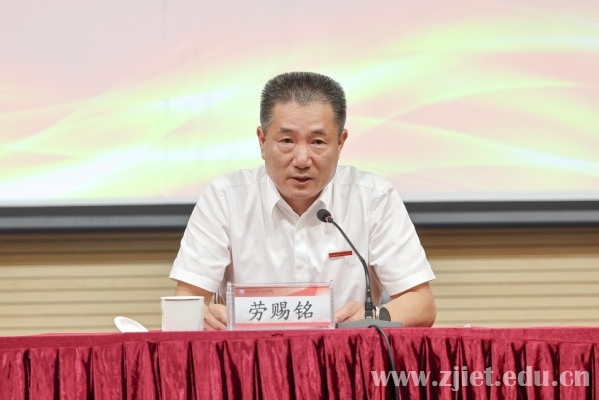 劳赐铭代表学校向辛勤耕耘在教学、科研、管理、服务一线的全体教职员工表示感谢,并就如何更好地“坚守教育初心、勇担时代使命”提出了四点希望。他指出,职业教育正处于发展的新征程、新起点,全体教师要胸怀国之大者,不断提高师德修养,增强能力本领,真心关爱学生,以更加饱满的热情、更加昂扬的斗志、更加扎实的工作,在平凡的岗位上用实际行动为学校高质量发展、为办好人民满意的教育再建新功!