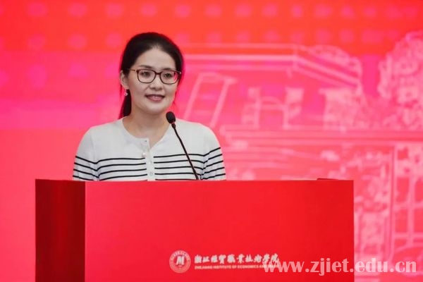 财务会计学院周肖肖老师作代表教师发言,她深情回顾了当年担任班主任与同学们相处的趣闻轶事,对校友们取得的成绩感到骄傲,并祝福校友们创造更好的未来。