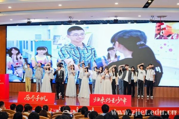 学弟学妹们准备了丰富多彩的节目与校友欢聚一堂,开场舞《闪耀》欢快活泼的音乐缭绕会场,轻快明亮的身影跃动舞台,拨动了全场的心弦。歌曲组合《凤凰花开的路口》,用歌声唱出祝福,用歌声表达心声,展现了新时代大学生奋发向上的积极风貌。最后全体师生同唱一首歌《新时代的经贸人》,追忆青春,共展未来。