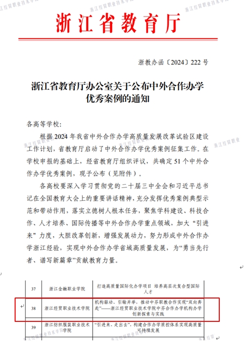 我校中外合作办学机构案例成功入选浙江省中外合作办学优秀案例