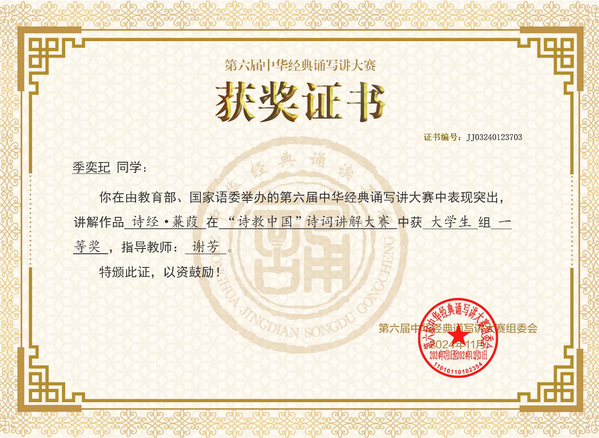 近日,由教育部、国家语委主办的第六届中华经典诵写讲大赛获奖名单公布。我校学生在大赛中表现出色,荣获国赛一等奖2项、二等奖1项,取得历史性突破。