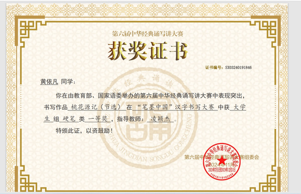 我校学生在教育部第六届中华经典诵写讲大赛中斩获佳绩