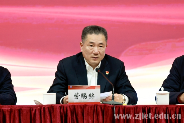 劳赐铭指出,过去一年,学校坚持以习近平新时代中国特色社会主义思想为指导,坚决贯彻中央、省委和上级决策部署,以坚定拥护“两个确立”、坚决做到“两个维护”的强烈政治担当,有力扛起管党治党政治责任,党的建设、全面从严治党工作取得新进展、新成效,为学校高质量发展提供了有力保障。2025年是贯彻全国教育大会精神、落实《教育强国建设规划纲要》的关键之年,也是学校“十四五”收官和“十五五”谋划之年,全校上下要从聚焦提升政治领导力,更高标准践行初心使命;聚焦提升思想引领力,更大力度凝聚奋进力量;聚焦提升组织战斗力,更优质量推动基层党建;聚焦提升纪律约束力,更严基调深化正风肃纪;聚焦提升制度执行力,更大程度转为治理效能等五个方面持续发力,推动各项工作落地落实。希望全校全体教职员工要大力弘扬“六干”作风,争当凝心铸魂、护航大局、干事创业、亲清有为的排头兵,努力办好党和人民满意的大学,为高质量发展建设共同富裕示范区、加快打造“重要窗口”、奋力谱写中国式现代化浙江新篇章做出“经贸贡献”。